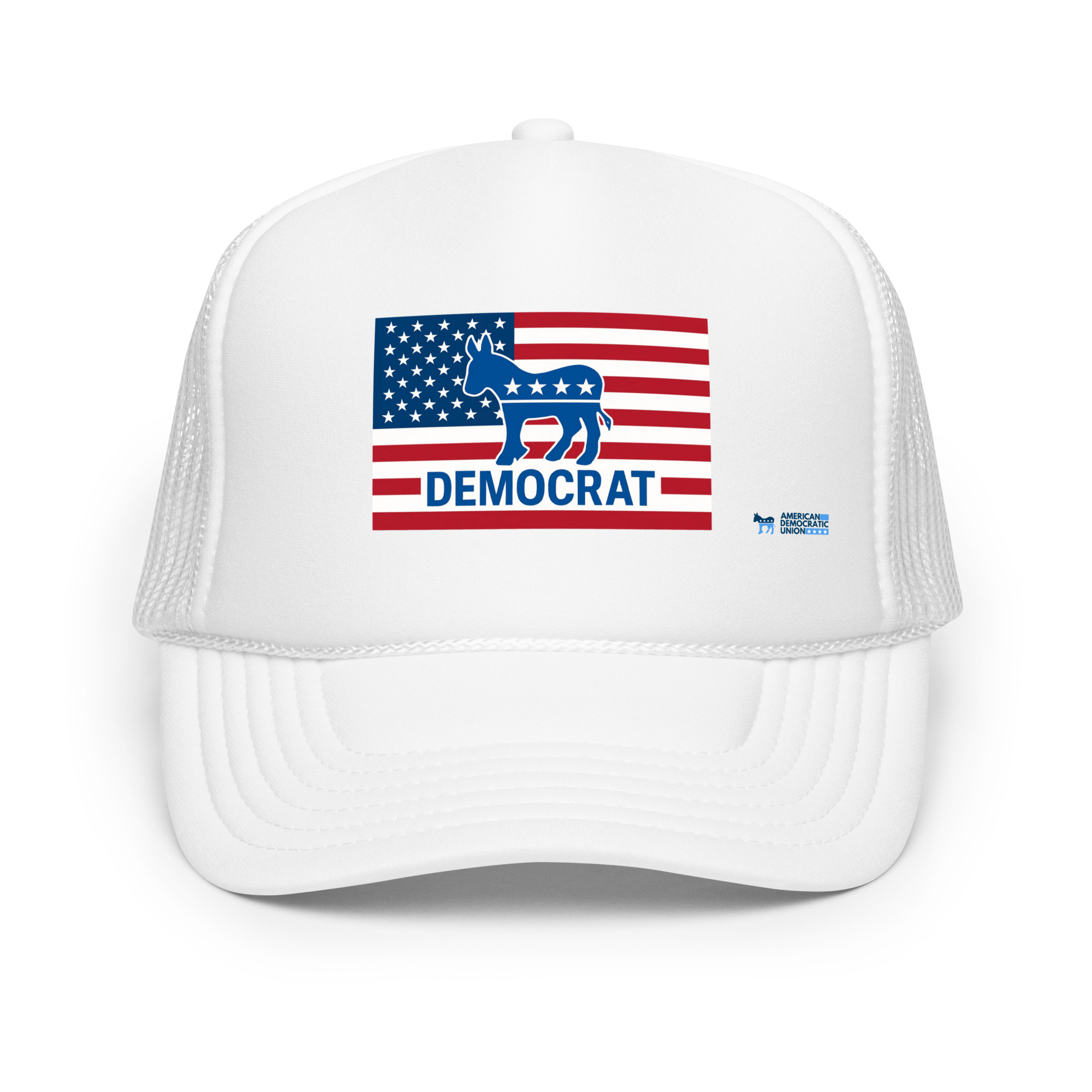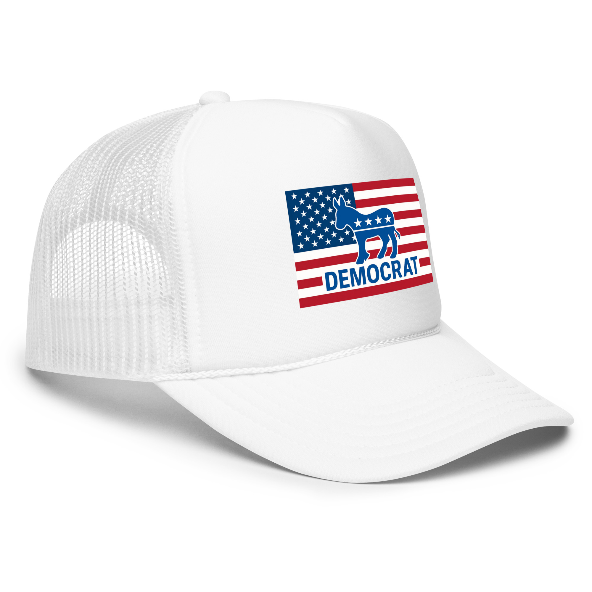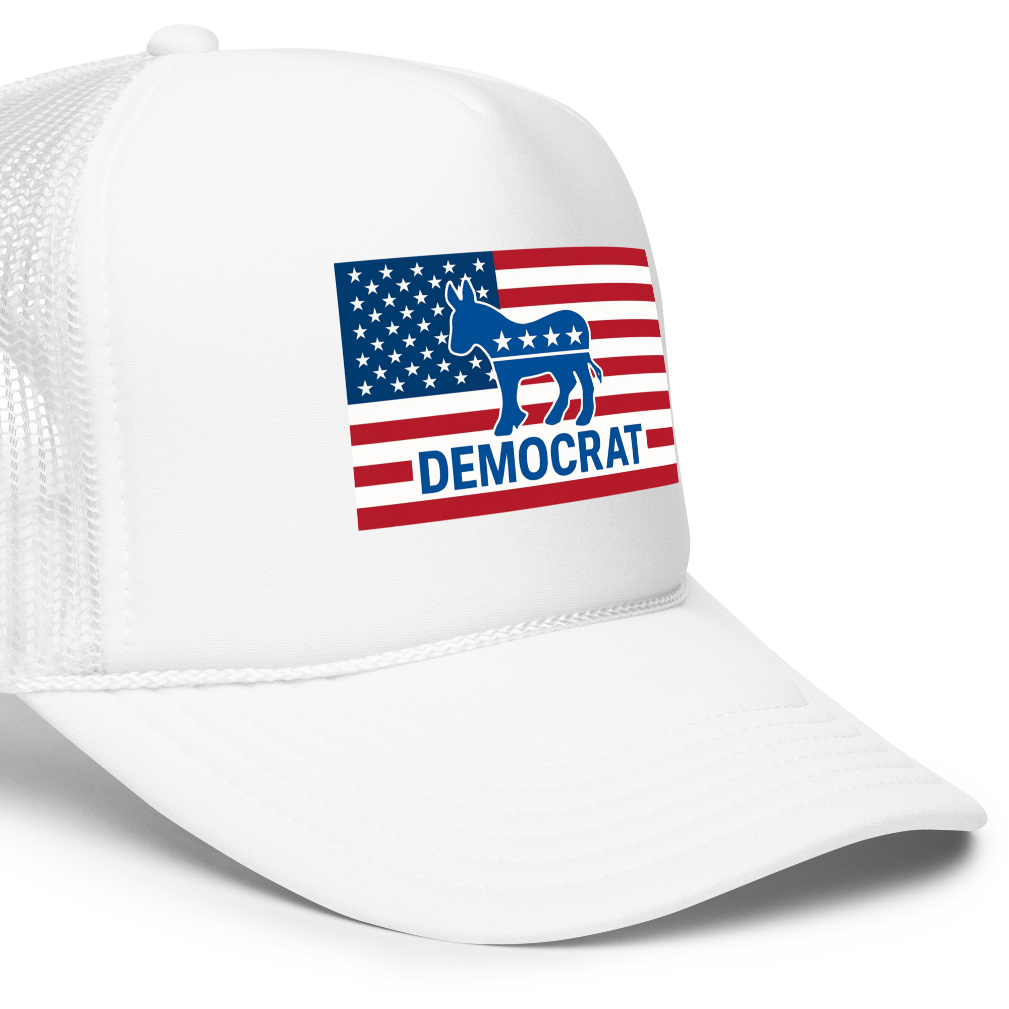 Celebrate democracy in style with this bold, high-impact foam trucker hat featuring the iconic Democratic donkey and American flag design. Whether you’re grilling on the 4th of July, marching in a rally, or simply showing up and speaking out — this hat is made for the proud, the active, and the unapologetically Democratic.