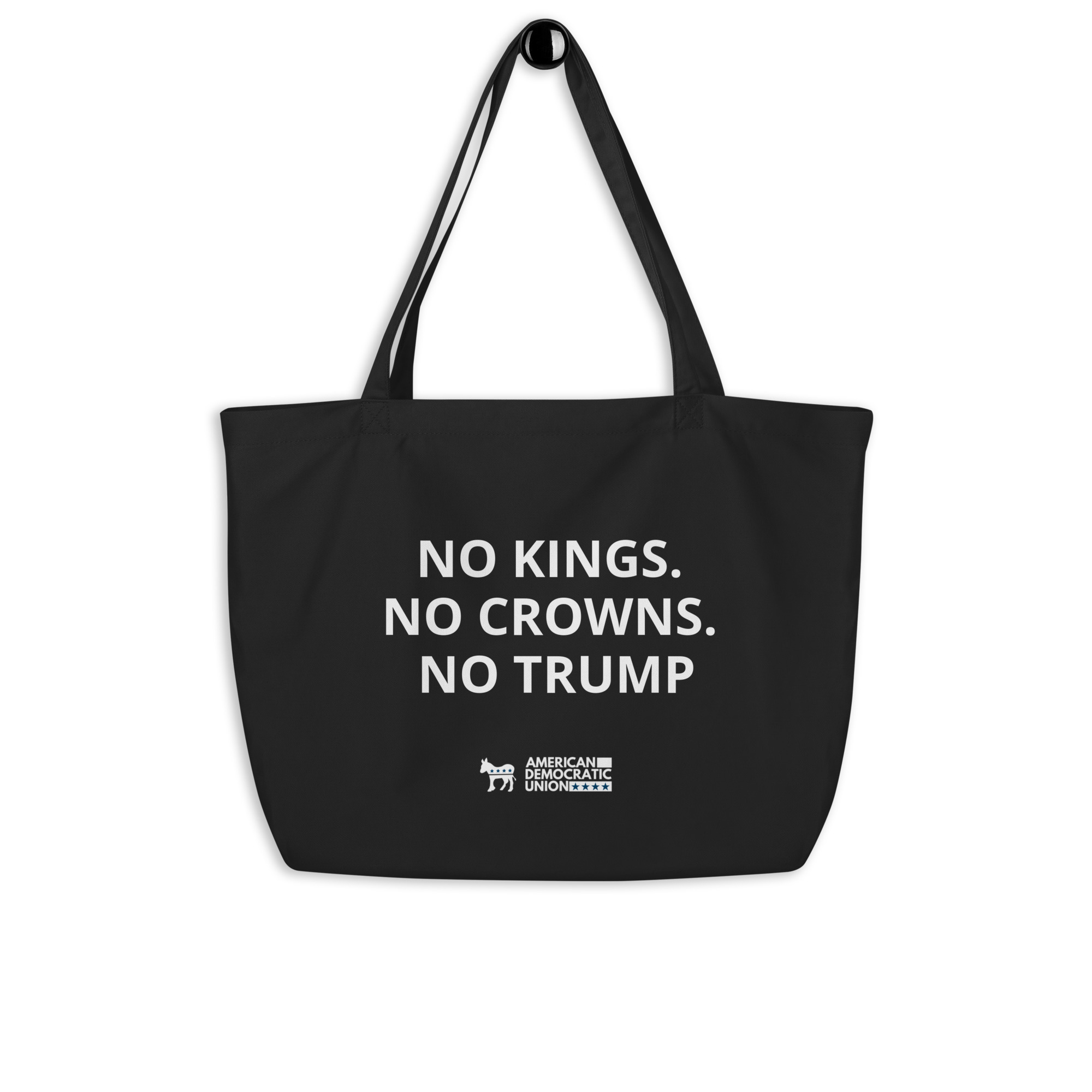Carry your values wherever you go with this fierce, statement-making tote. Whether you choose the glitch-style protest version or the crown-crossed street graphic, this bag says what needs to be said: No Kings. No Crowns. No Trump. This is a republic, not a throne room.