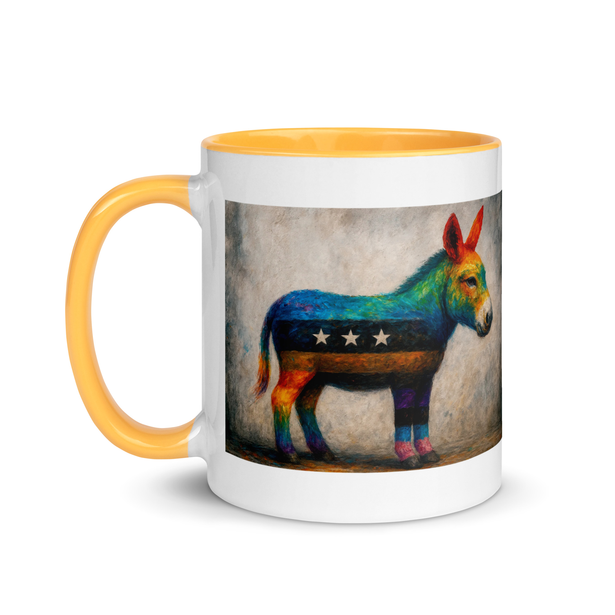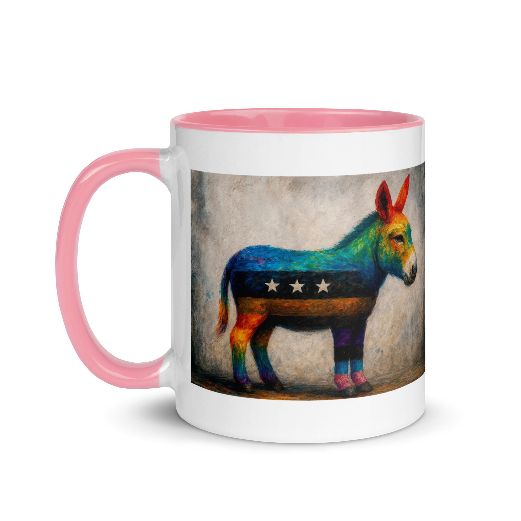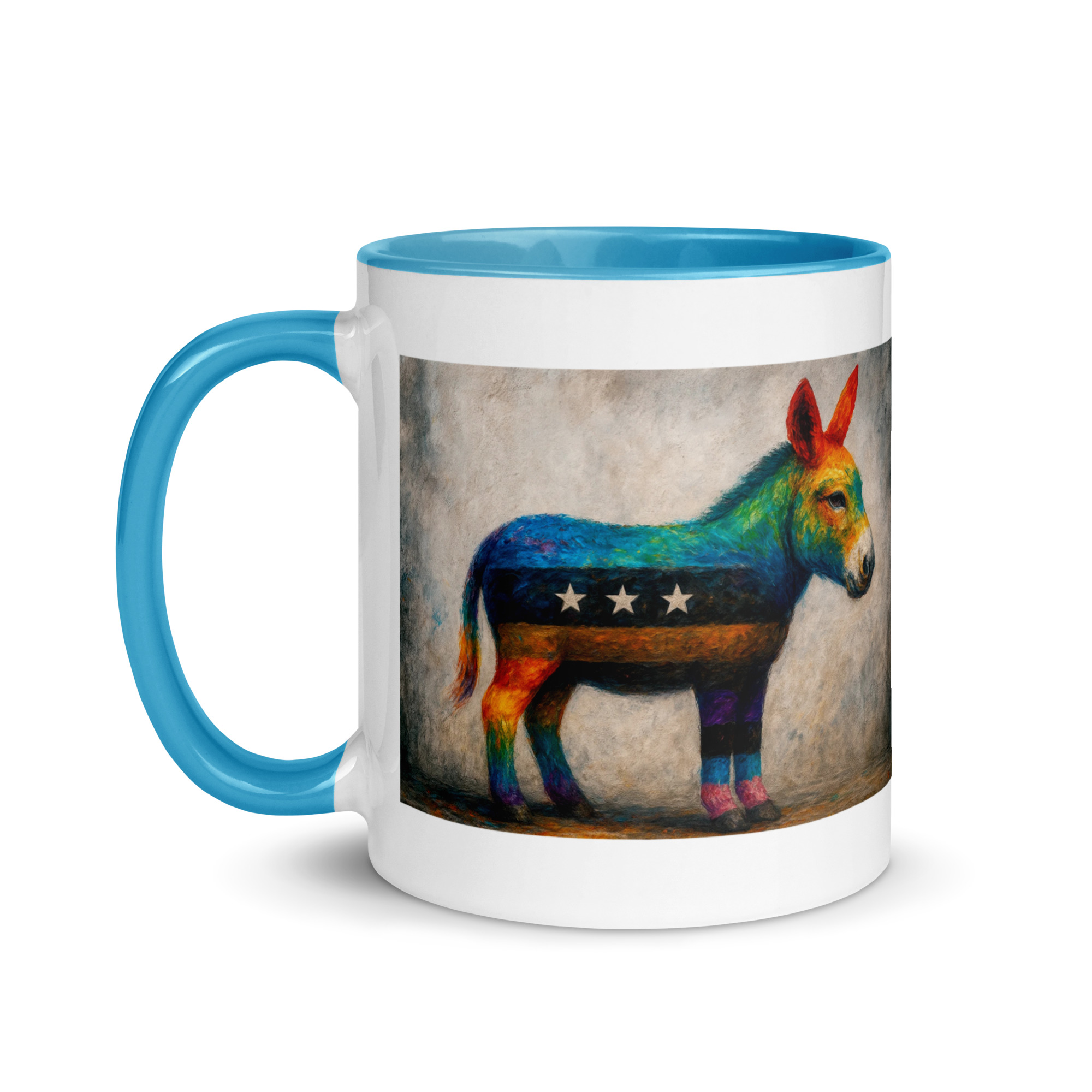 LGBTQ+ identity, featuring our iconic rainbow donkey and the official American Democratic Union logo. With a vibrant colored rim, handle, and interior, it’s more than a mug — it’s a moment of visibility, resistance, and joy in every sip.