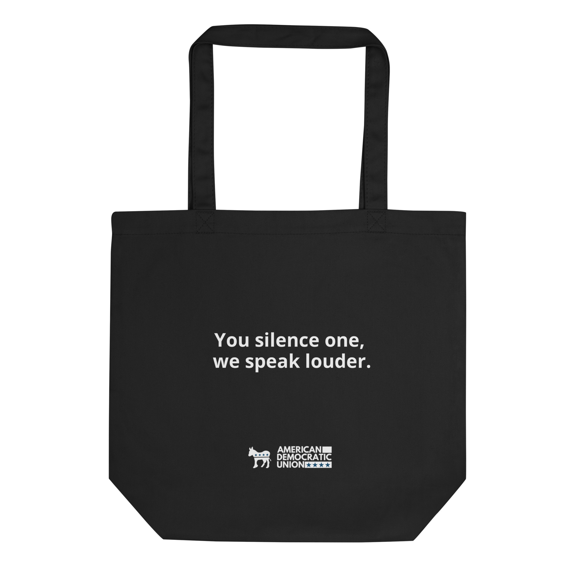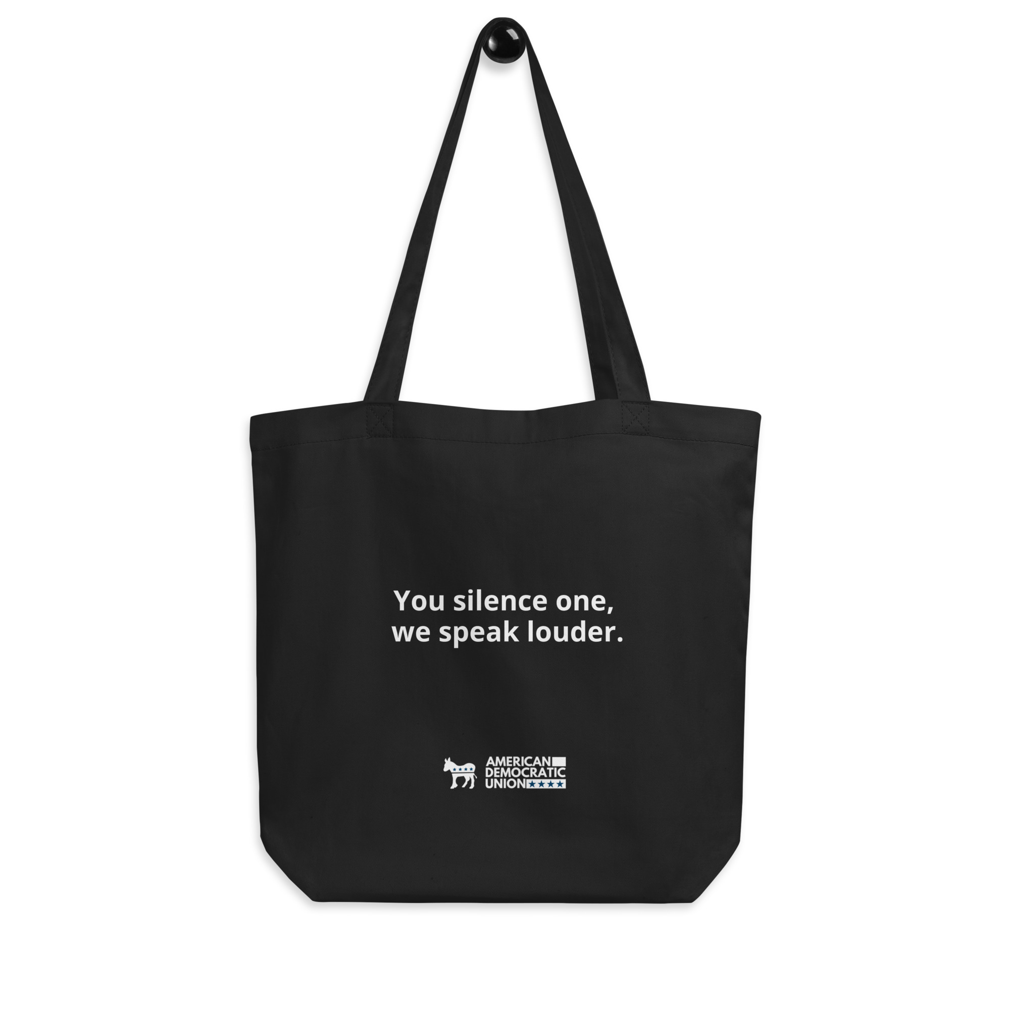 Featuring bold artwork that honors women, Black voices, and collective resistance, this organic cotton bag makes a statement in every space. The phrase “You Silence One, We Speak Louder” isn’t a slogan — it’s a warning to every system that’s tried to silence the powerful.